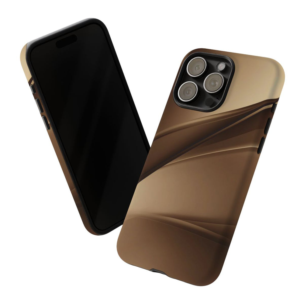 Dit telefoonhoesje heeft een abstract ontwerp met vloeiende lijnen in verschillende bruintinten. Het kleurverloop zorgt voor een zachte overgang tussen lichte en donkere delen, wat het hoesje een moderne en elegante uitstraling geeft. Dankzij de dubbele laag van polycarbonaat en TPU is het hoesje stevig en biedt het optimale bescherming. Daarnaast ondersteunt het hoesje draadloos opladen.