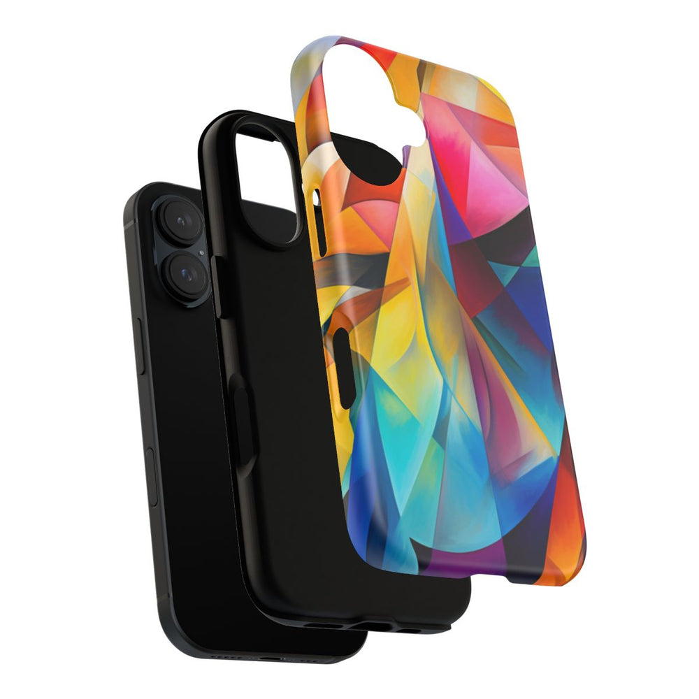 Dit opvallende hoesje heeft een levendig ontwerp met een dynamische mix van geometrische vormen en abstracte elementen. Het kunstwerk bestaat uit een rijk kleurenpalet met onder andere heldergeel, diepblauw en felrood, wat zorgt voor een opvallende uitstraling. De scherpe lijnen en vloeiende rondingen vormen samen een harmonieus geheel. Dankzij de dubbele laag biedt het hoesje extra bescherming en is het geschikt voor draadloos opladen. Ideaal voor liefhebbers van moderne kunst en gedurfde kleuren.