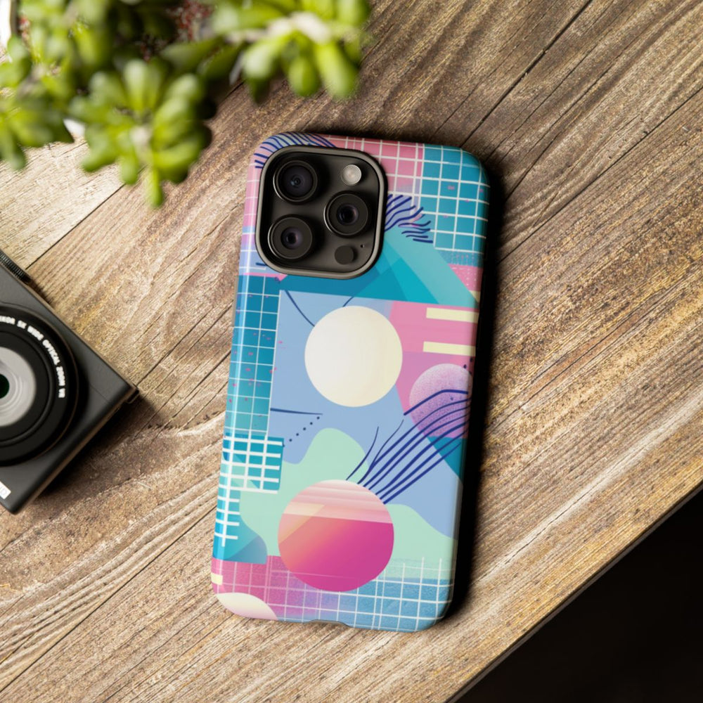Dit hoesje is voorzien van een abstract geometrisch patroon met een speelse mix van vormen zoals driehoeken, cirkels en ruitmotieven. De kleuren bestaan uit zachte pasteltinten blauw, roze en paars, met accenten van wit en mintgroen. Verschillende texturen en lijnpatronen zorgen voor extra diepte en een unieke uitstraling. Het glanzende, stevige hoesje is gemaakt van polycarbonaat en TPU en biedt dubbele bescherming. Geschikt voor dagelijks gebruik en ondersteunt draadloos opladen.