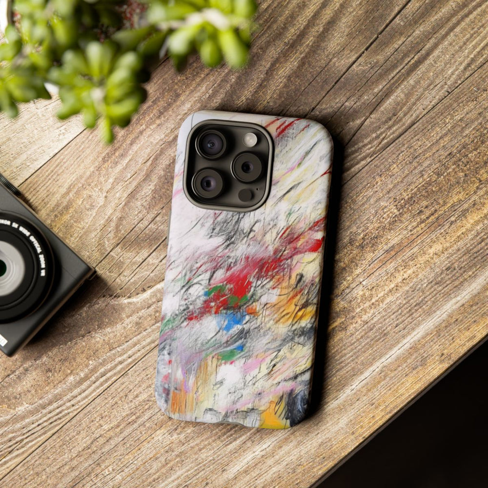Dit hoesje heeft een abstract ontwerp met dynamische verfstreken en vegen in diverse kleuren, zoals rood, zwart, geel, roze, groen, blauw en grijs. De overwegend witte achtergrond zorgt voor een opvallend contrast, waardoor de levendige en speelse compositie extra goed tot zijn recht komt. Het stevige hoesje bestaat uit twee lagen: een polycarbonaat buitenkant en een TPU-binnenzijde, voor optimale bescherming. Geschikt voor draadloos opladen.