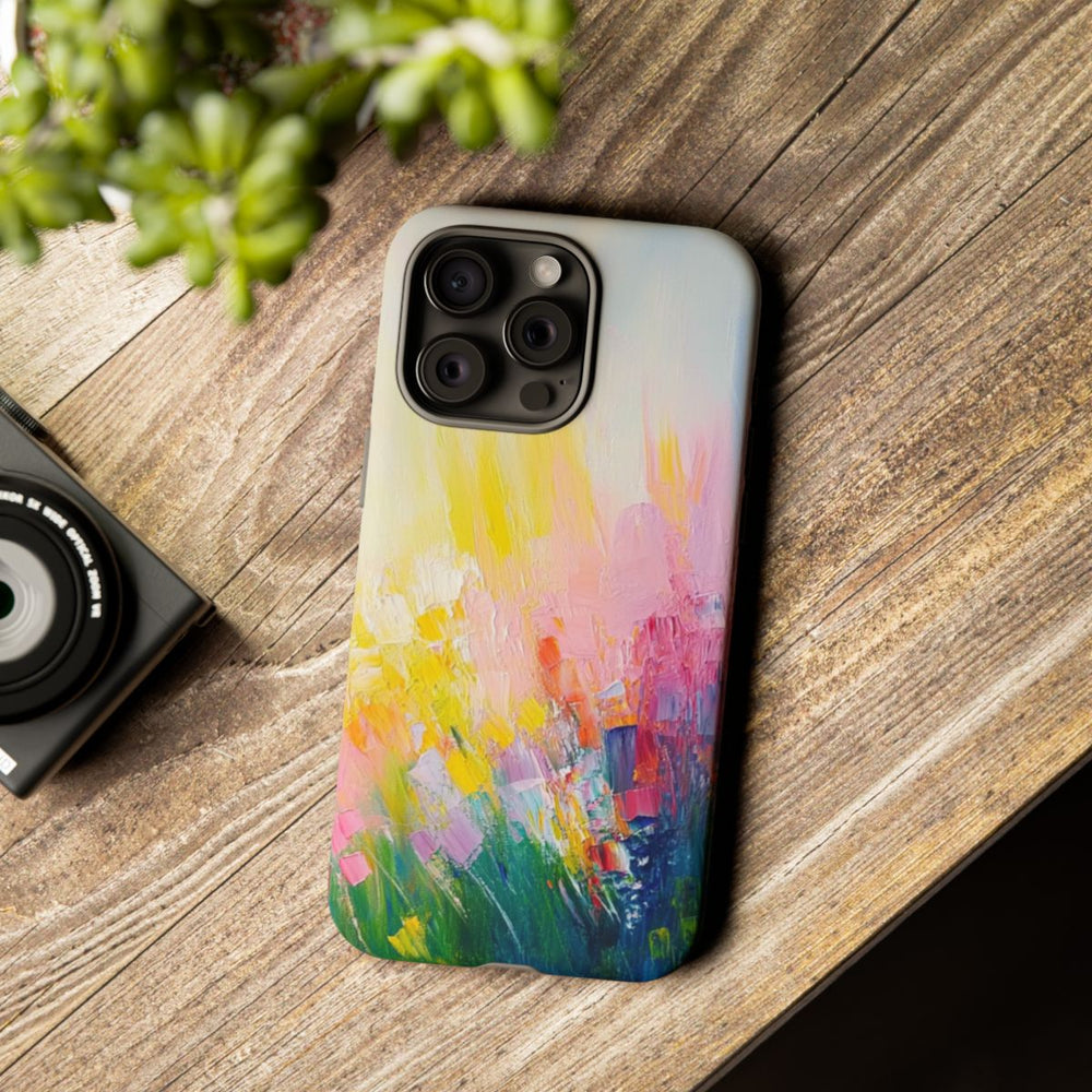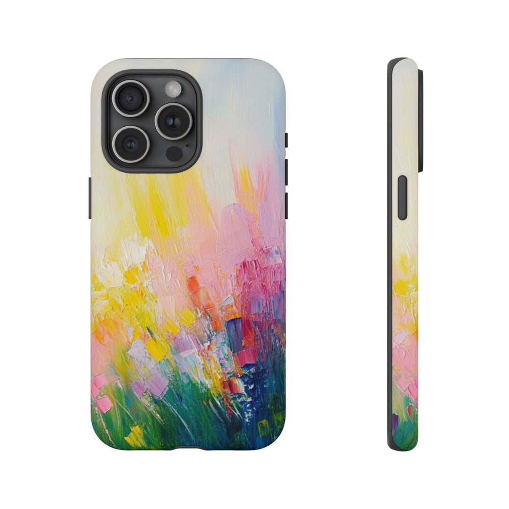 Dit hoesje heeft een opvallend ontwerp met levendige, abstracte verfstreken in heldere tinten geel, roze, paars, blauw en groen. De verfstructuur is dik en gelaagd, wat zorgt voor een dynamisch en speels effect. De achtergrond loopt over van lichte naar donkere kleuren, waardoor er extra diepte ontstaat. Het hoesje bestaat uit twee stevige lagen met een matte afwerking van polycarbonaat en TPU. Het ondersteunt draadloos opladen en is bestand tegen invloeden van buitenaf.
