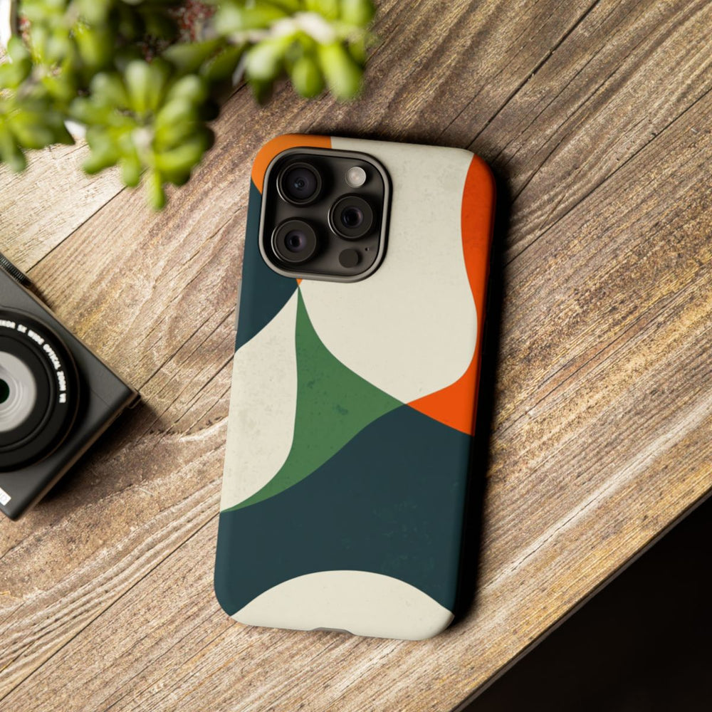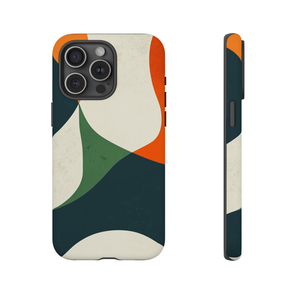 Geef je toestel een stijlvolle uitstraling met dit matte, sterke telefoonhoesje met een modern abstract design. Geïnspireerd op Scandinavische esthetiek, kenmerkt het hoesje zich door vloeiende lijnen en gelaagde organische vormen in levendig groen, oranje en donkerblauw. De strakke, minimalistische stijl maakt het hoesje ideaal voor professioneel gebruik. Gemaakt van 100% polycarbonaat en TPU biedt de dubbele laag optimale bescherming en duurzaamheid, terwijl de optische kwaliteit behouden blijft. Geschikt voor draadloos opladen voor extra gebruiksgemak.