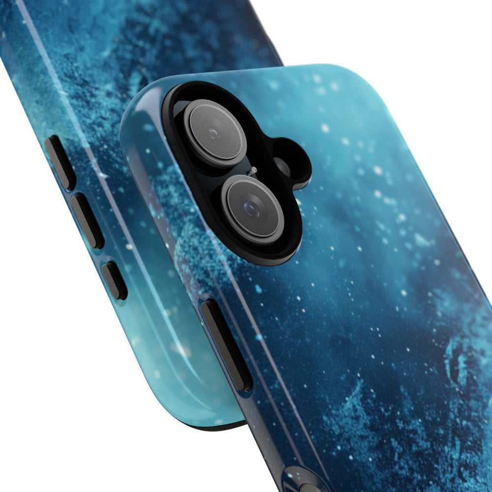 Dit telefoonhoesje heeft een opvallend ontwerp met een close-up van een ijzige ondergrond in een filmisch blauwe tint. Je ziet duidelijk de structuur van ijskristallen en fijne sneeuwdeeltjes die in de koude lucht zweven, wat zorgt voor een dynamische en winterse uitstraling. De achtergrond verloopt naar een diepere blauwtint, waardoor het gevoel van diepte en kou wordt versterkt. Dit glanzende en stevige hoesje bestaat uit twee lagen: een harde polycarbonaat buitenkant en een schokabsorberende TPU binnenzijde, voor optimale bescherming en duurzaamheid. Het hoesje ondersteunt draadloos opladen en is bestand tegen weersinvloeden, zodat de uitstraling langdurig mooi blijft.