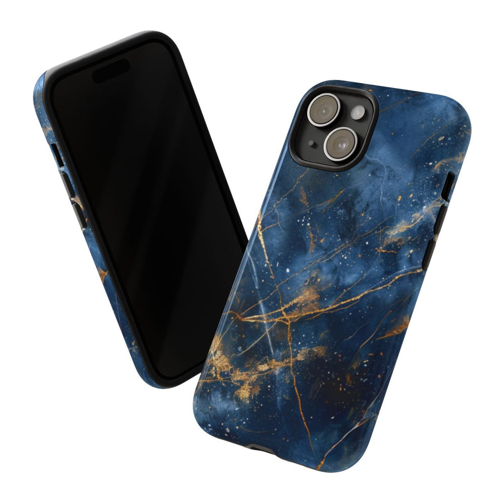 Dit hoesje heeft een stijlvol blauw marmerpatroon met verfijnde gouden aders die over het hele ontwerp lopen. De combinatie van diepe en lichtere blauwtinten met subtiele witte accenten zorgt voor een dynamische en elegante uitstraling. De gouden aders geven het geheel een luxe effect en vormen een mooi contrast met de blauwe achtergrond. Het glanzende hoesje is stevig uitgevoerd met een dubbele laag: een harde polycarbonaat buitenkant en een schokabsorberende TPU binnenzijde voor optimale bescherming en duurzaamheid. Geschikt voor draadloos opladen en uitstekend bestand tegen dagelijks gebruik en verschillende weersomstandigheden.