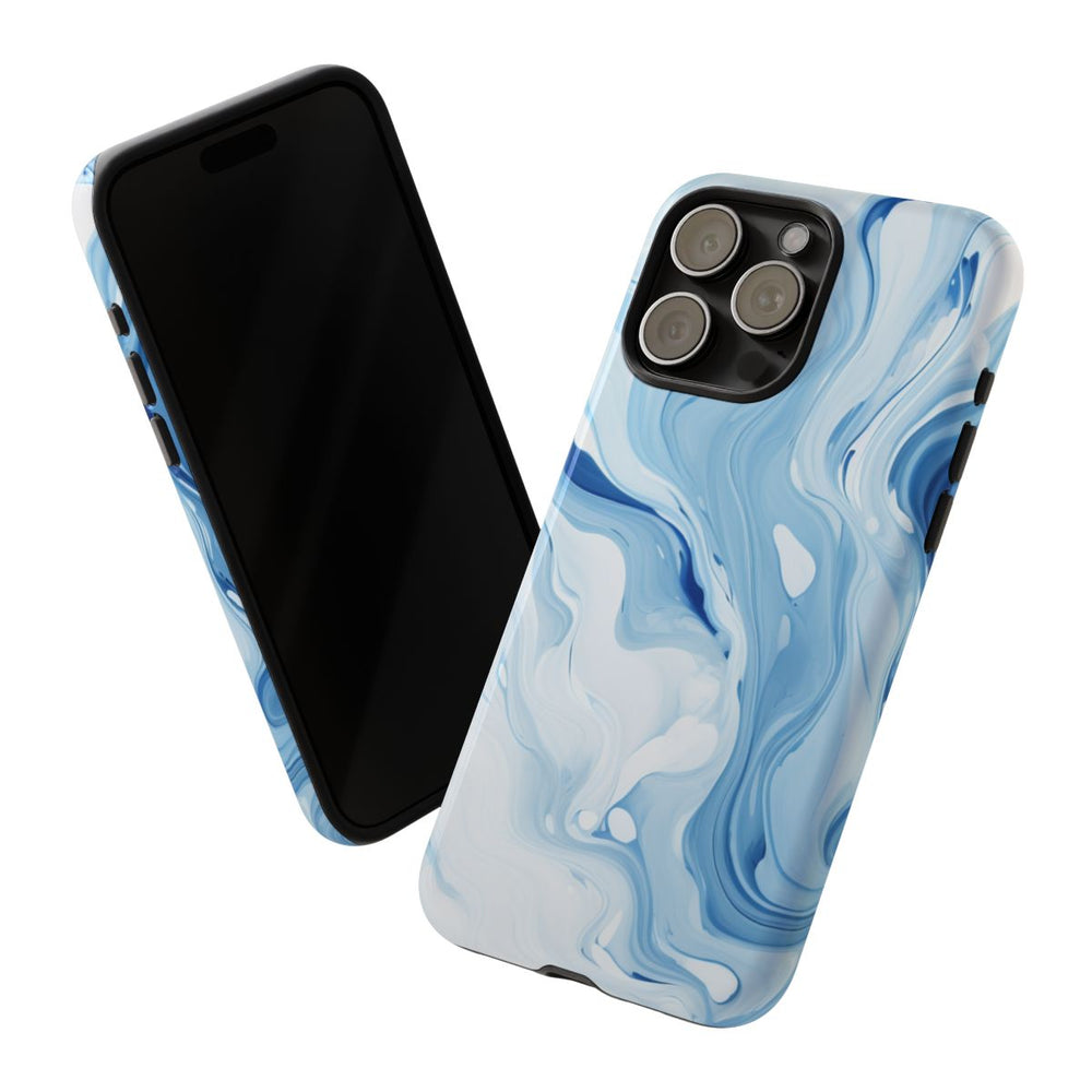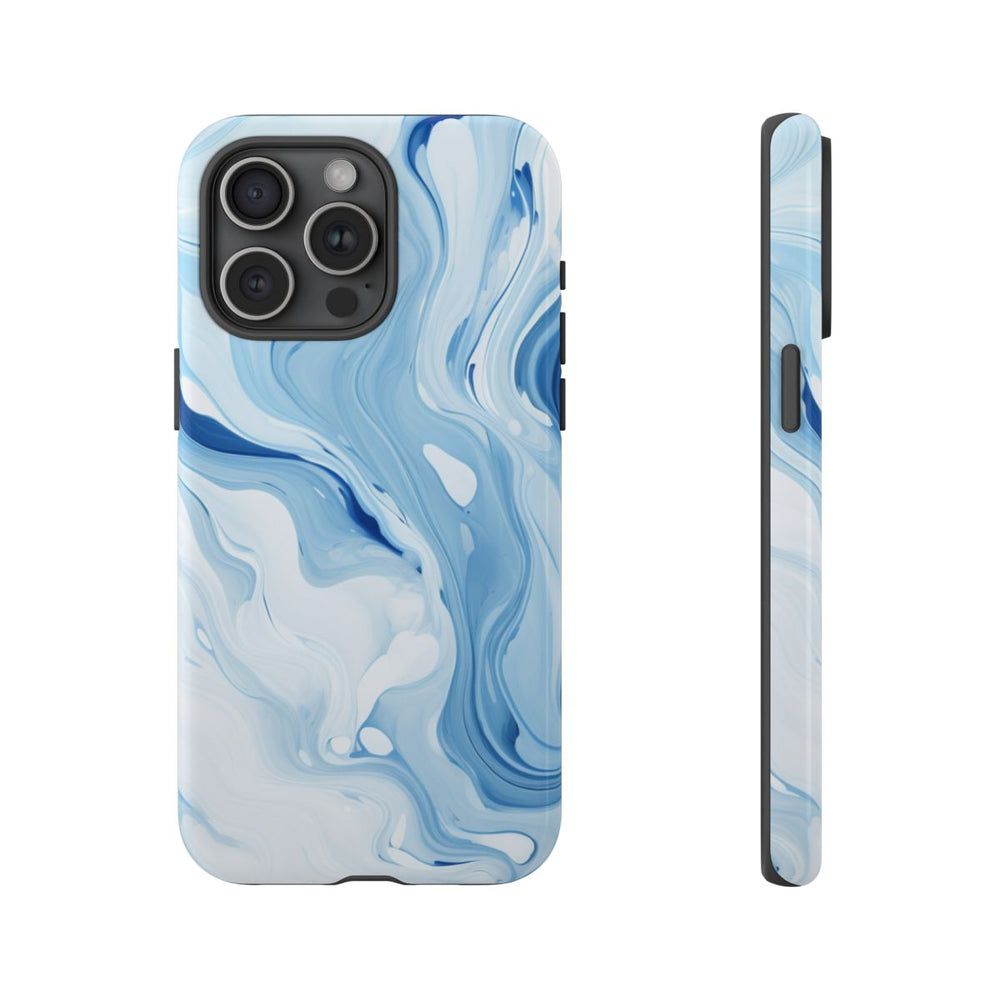 Dit hoesje is voorzien van een sierlijk marmerpatroon in verschillende tinten blauw en wit. De abstracte, vloeiende vormen lopen naadloos in elkaar over en zorgen voor een dynamisch en rustgevend effect. Het hoesje heeft een glanzende afwerking en bestaat uit een stevige polycarbonaat buitenkant met een TPU-binnenlaag voor extra bescherming. Het hoesje ondersteunt draadloos opladen en is bestand tegen invloeden van buitenaf, zodat het ontwerp langdurig mooi blijft. De koele kleuren en organische beweging maken dit hoesje tot een stijlvolle en functionele keuze.