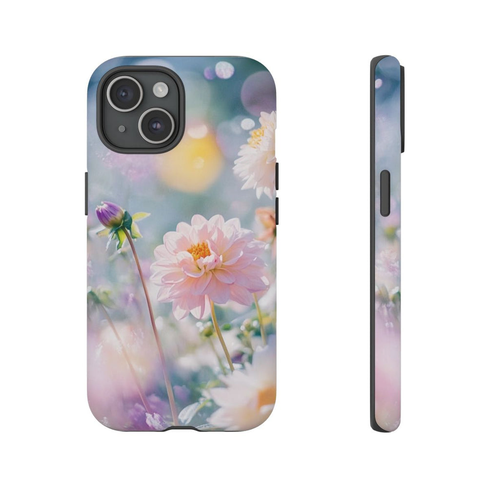 Dit hoesje heeft een prachtig ontwerp met een groep dahlia's in zachte pasteltinten, duidelijk zichtbaar op de voorgrond. De bloemen worden omringd door een dromerig bokeh-effect, wat zorgt voor een levendige en sfeervolle uitstraling. Op de achtergrond zijn subtiele, vervaagde kleuren te zien die het bloemmotief versterken. Het hoesje is gemaakt van stevige materialen en biedt optimale bescherming voor je toestel, terwijl het het schitterende bloemenontwerp laat zien. Ideaal voor liefhebbers van bloemen en iedereen die houdt van de schoonheid van de natuur.
