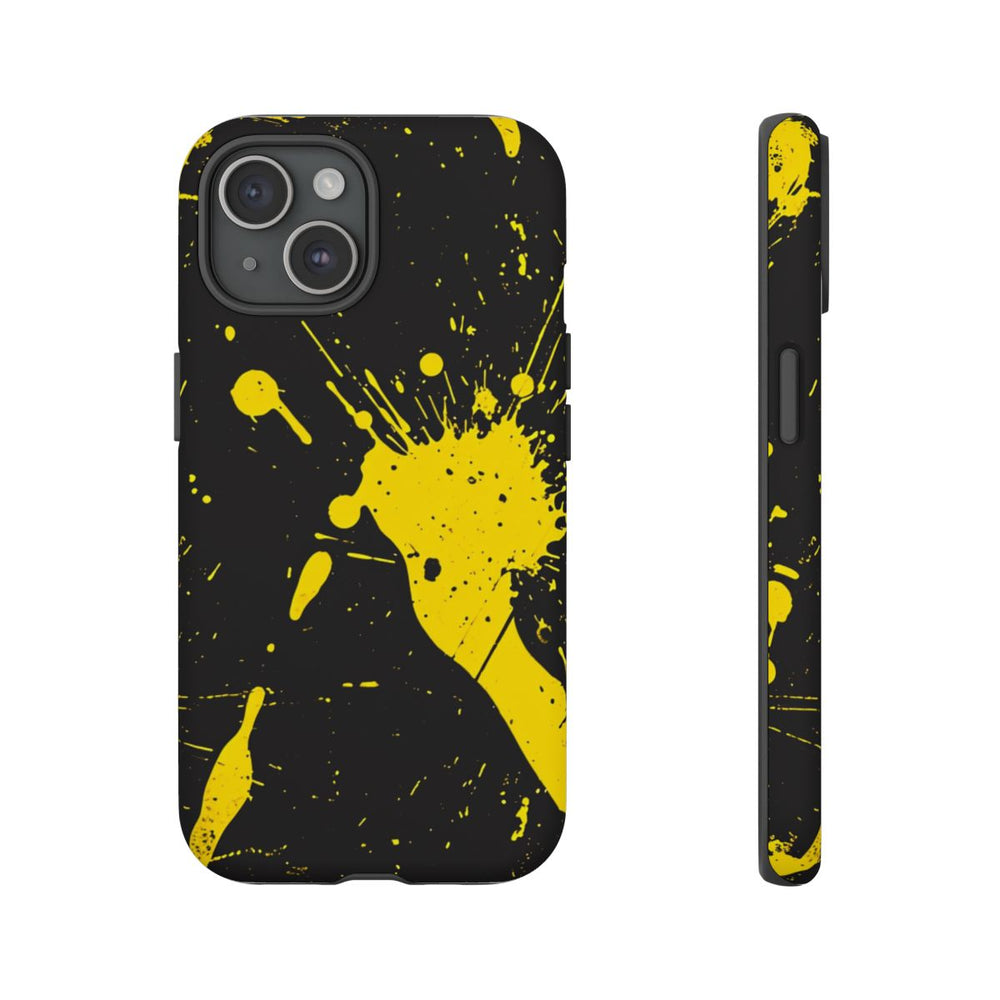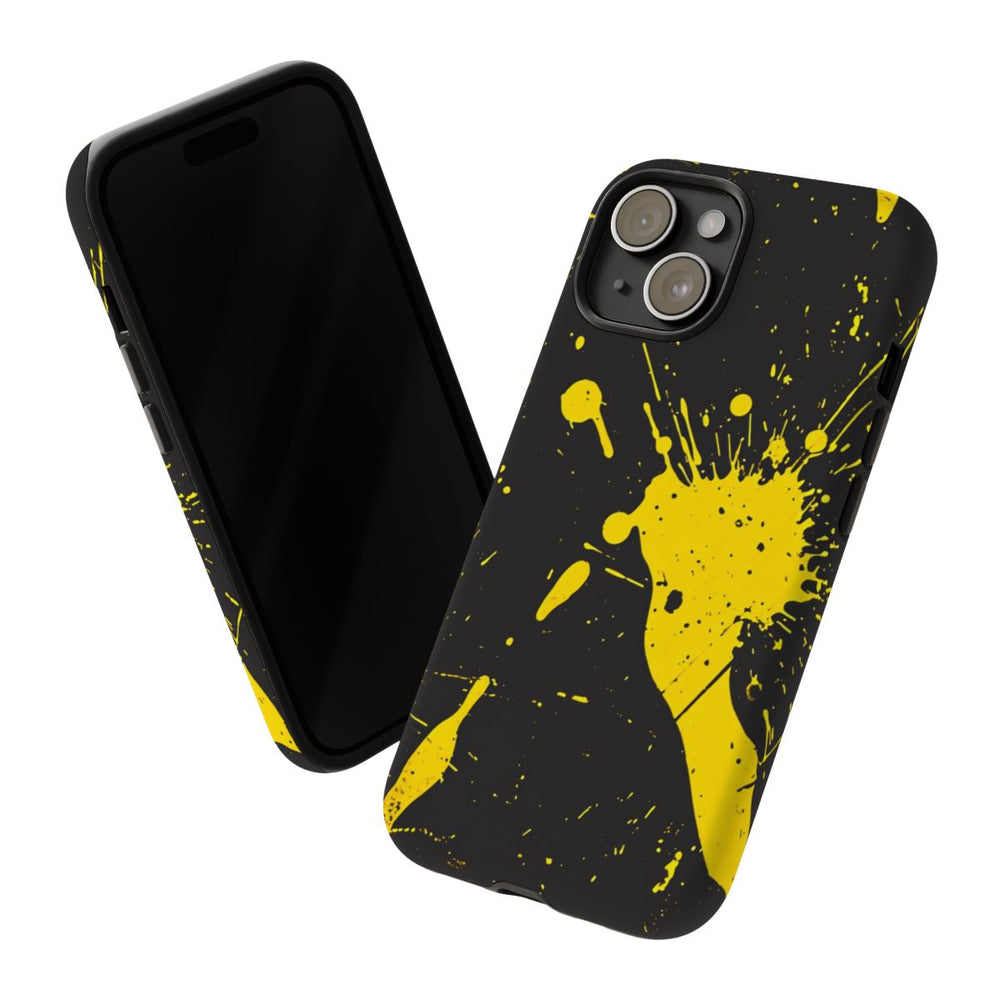 Dit telefoonhoesje heeft een opvallend ontwerp met heldergele verfspatten op een effen zwarte achtergrond. De spatten verschillen in grootte en vorm, wat zorgt voor een levendig en dynamisch abstract patroon. Het hoesje heeft een matte afwerking en bestaat uit twee lagen: een stevige polycarbonaat buitenkant en een TPU binnenkant voor extra bescherming en duurzaamheid. Geschikt voor draadloos opladen en bestand tegen weersinvloeden, terwijl de optische kwaliteit langdurig behouden blijft.