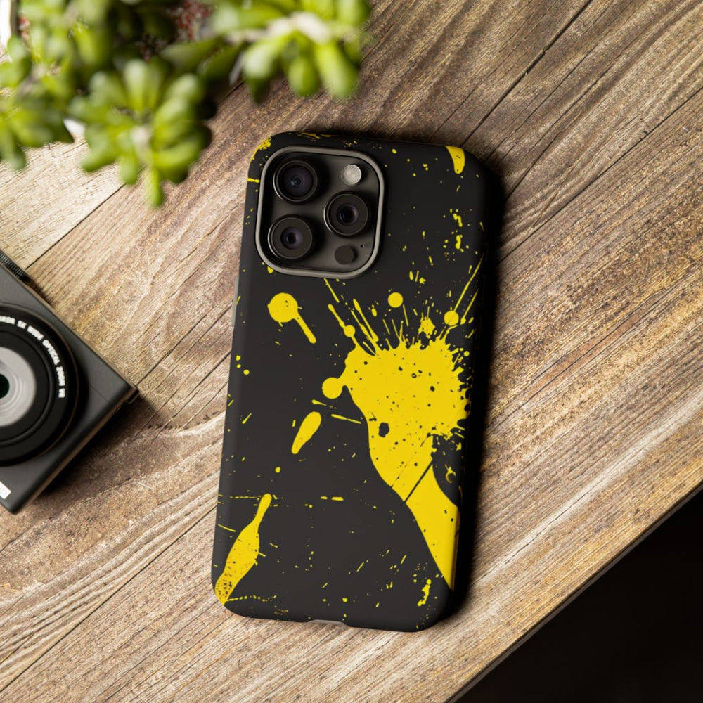 Dit telefoonhoesje heeft een opvallend ontwerp met heldergele verfspatten op een effen zwarte achtergrond. De spatten verschillen in grootte en vorm, wat zorgt voor een levendig en dynamisch abstract patroon. Het hoesje heeft een matte afwerking en bestaat uit twee lagen: een stevige polycarbonaat buitenkant en een TPU binnenkant voor extra bescherming en duurzaamheid. Geschikt voor draadloos opladen en bestand tegen weersinvloeden, terwijl de optische kwaliteit langdurig behouden blijft.