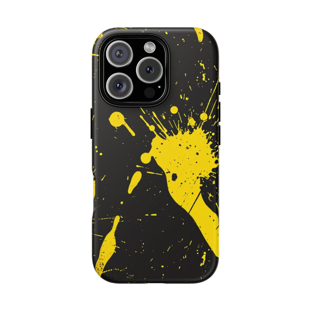 Dit telefoonhoesje heeft een opvallend ontwerp met heldergele verfspatten op een effen zwarte achtergrond. De spatten verschillen in grootte en vorm, wat zorgt voor een levendig en dynamisch abstract patroon. Het hoesje heeft een matte afwerking en bestaat uit twee lagen: een stevige polycarbonaat buitenkant en een TPU binnenkant voor extra bescherming en duurzaamheid. Geschikt voor draadloos opladen en bestand tegen weersinvloeden, terwijl de optische kwaliteit langdurig behouden blijft.