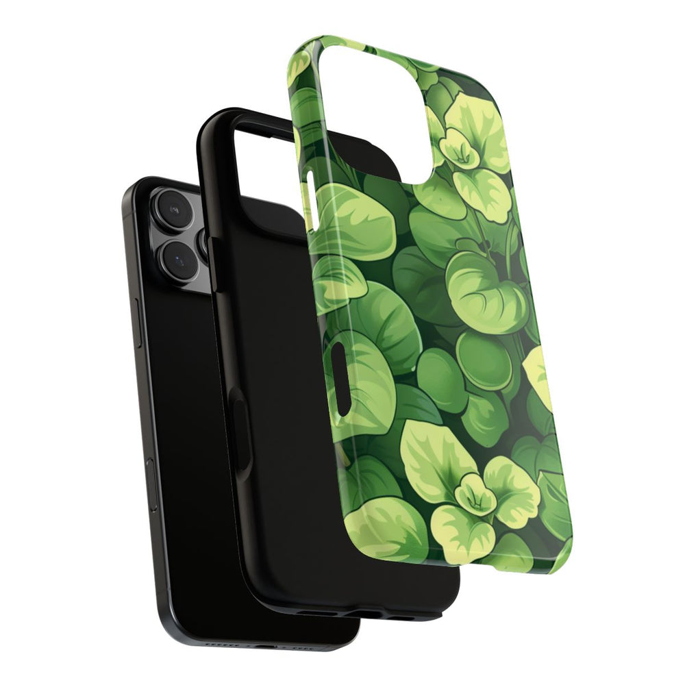 Dit hoesje is voorzien van een dicht patroon van geïllustreerde microgroenten met bladeren in verschillende groentinten. De bladeren zijn gedetailleerd uitgewerkt met lichte en donkere accenten, wat zorgt voor een gelaagde en levendige uitstraling. Het naadloze patroon benadrukt op een stijlvolle manier natuurlijke elementen. Het hoesje is glanzend afgewerkt en heeft een stevige dubbele laag van polycarbonaat en TPU, voor extra stevigheid en bescherming. Geschikt voor draadloos opladen en bestand tegen invloeden van buitenaf.