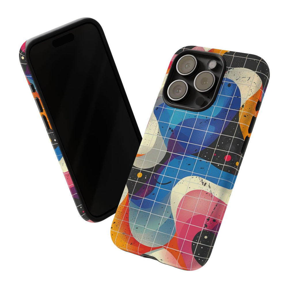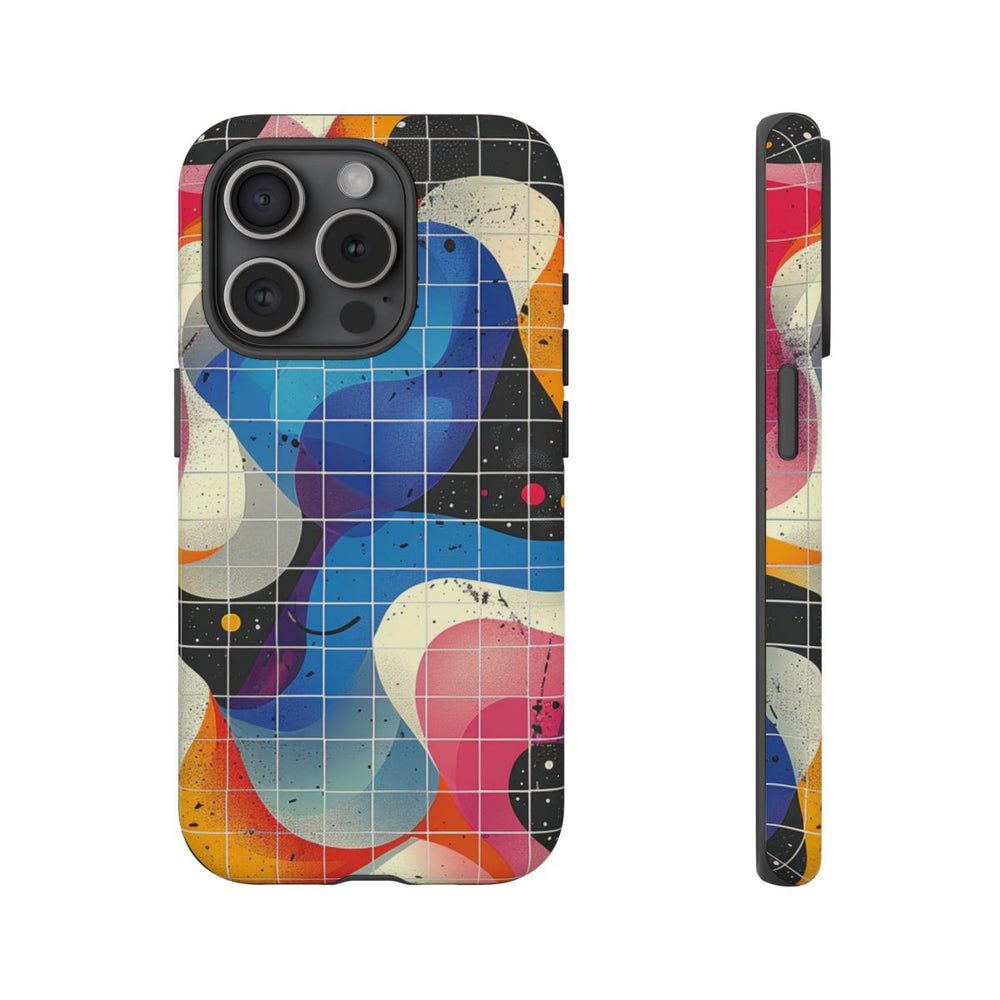 Dit telefoonhoesje heeft een abstract ontwerp met golvende vormen in levendige kleuren zoals blauw, oranje, roze, wit en zwart. De soepele lijnen en gelaagde vormen zorgen voor een dynamische, vloeiende uitstraling. Kleine stipjes en spikkels zijn over het patroon verspreid en geven extra diepte en textuur. Het matte hoesje is stevig uitgevoerd met een dubbele laag van polycarbonaat en TPU, waardoor het bestand is tegen stoten en geschikt is voor buitengebruik. Dit hoesje ondersteunt draadloos opladen.