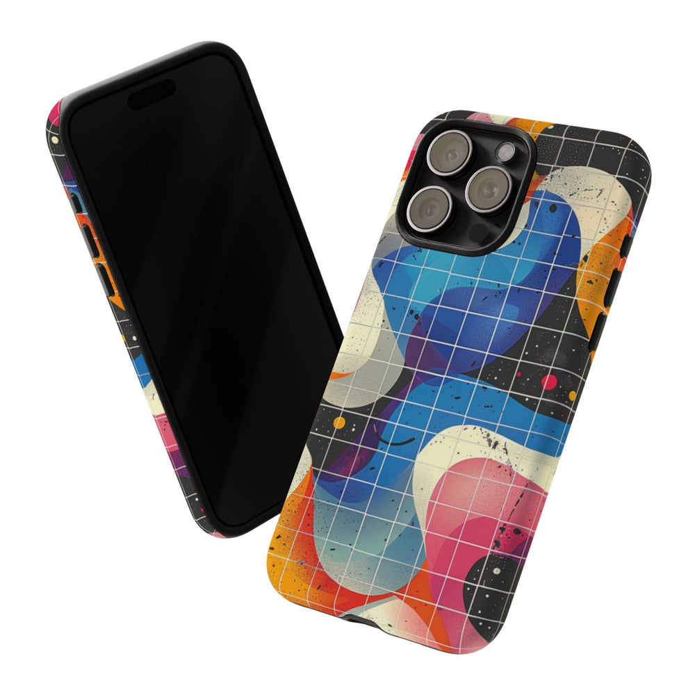 Dit telefoonhoesje heeft een abstract ontwerp met golvende vormen in levendige kleuren zoals blauw, oranje, roze, wit en zwart. De soepele lijnen en gelaagde vormen zorgen voor een dynamische, vloeiende uitstraling. Kleine stipjes en spikkels zijn over het patroon verspreid en geven extra diepte en textuur. Het matte hoesje is stevig uitgevoerd met een dubbele laag van polycarbonaat en TPU, waardoor het bestand is tegen stoten en geschikt is voor buitengebruik. Dit hoesje ondersteunt draadloos opladen.