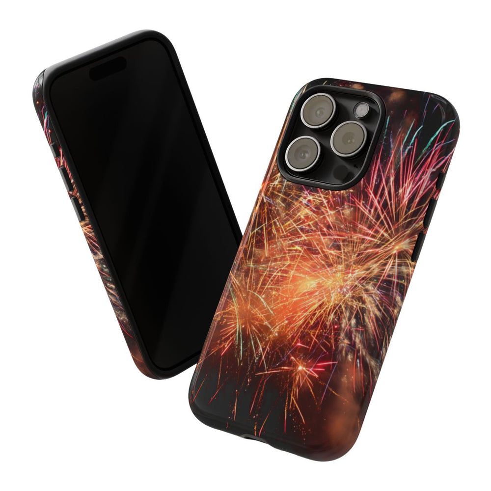 Dit hoesje heeft een levendig ontwerp met vuurwerk dat uitbarst tegen een zwarte nachtelijke hemel. De vuurpijlen tonen een mix van heldere kleuren zoals goud, rood, turquoise en paars, wat zorgt voor een dynamische en feestelijke uitstraling. De afbeelding legt de fijne sporen en vonken van het vuurwerk vast, precies op het moment van ontploffen. Het hoesje heeft een glanzende afwerking en is stevig opgebouwd uit een dubbele laag met een polycarbonaat buitenkant en een TPU binnenzijde. Dit zorgt voor extra bescherming en maakt het hoesje geschikt voor gebruik buitenshuis. Het hoesje ondersteunt draadloos opladen en behoudt langdurig zijn heldere uitstraling.