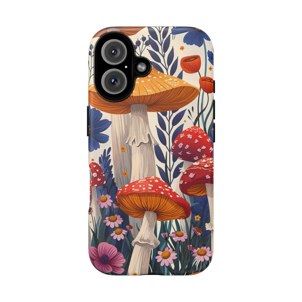 Bescherm je telefoon in stijl met dit matte, stevige hoesje met een vrolijk ontwerp van kleurrijke paddenstoelen, pastelkleurige bloemen en zonnige accenten. De print is geïnspireerd op klassieke illustraties en valt op door de rijke paarstinten en verfijnde details, wat zorgt voor een speelse en opvallende uitstraling. Het hoesje bestaat uit twee lagen van 100% polycarbonaat en TPU en biedt uitstekende bescherming, terwijl draadloos opladen gewoon mogelijk blijft. Laat je telefoon opvallen met dit unieke hoesje dat plezier en functionaliteit perfect combineert!