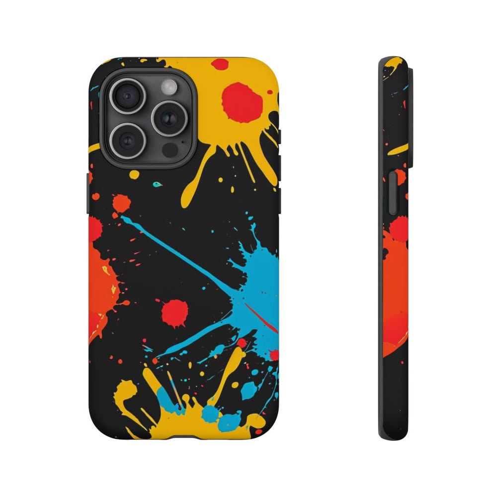 Dit hoesje heeft een opvallend ontwerp met levendige verfspatten in geel, rood en blauw op een diepe zwarte achtergrond. De spatten verschillen in grootte en vorm, waardoor een dynamisch en energiek patroon ontstaat. Het stevige hoesje bestaat uit twee lagen, met een buitenkant van polycarbonaat en een TPU-voering voor extra bescherming en duurzaamheid. Het hoesje ondersteunt draadloos opladen en is bestand tegen weersinvloeden, zodat de kleuren langdurig mooi blijven.
