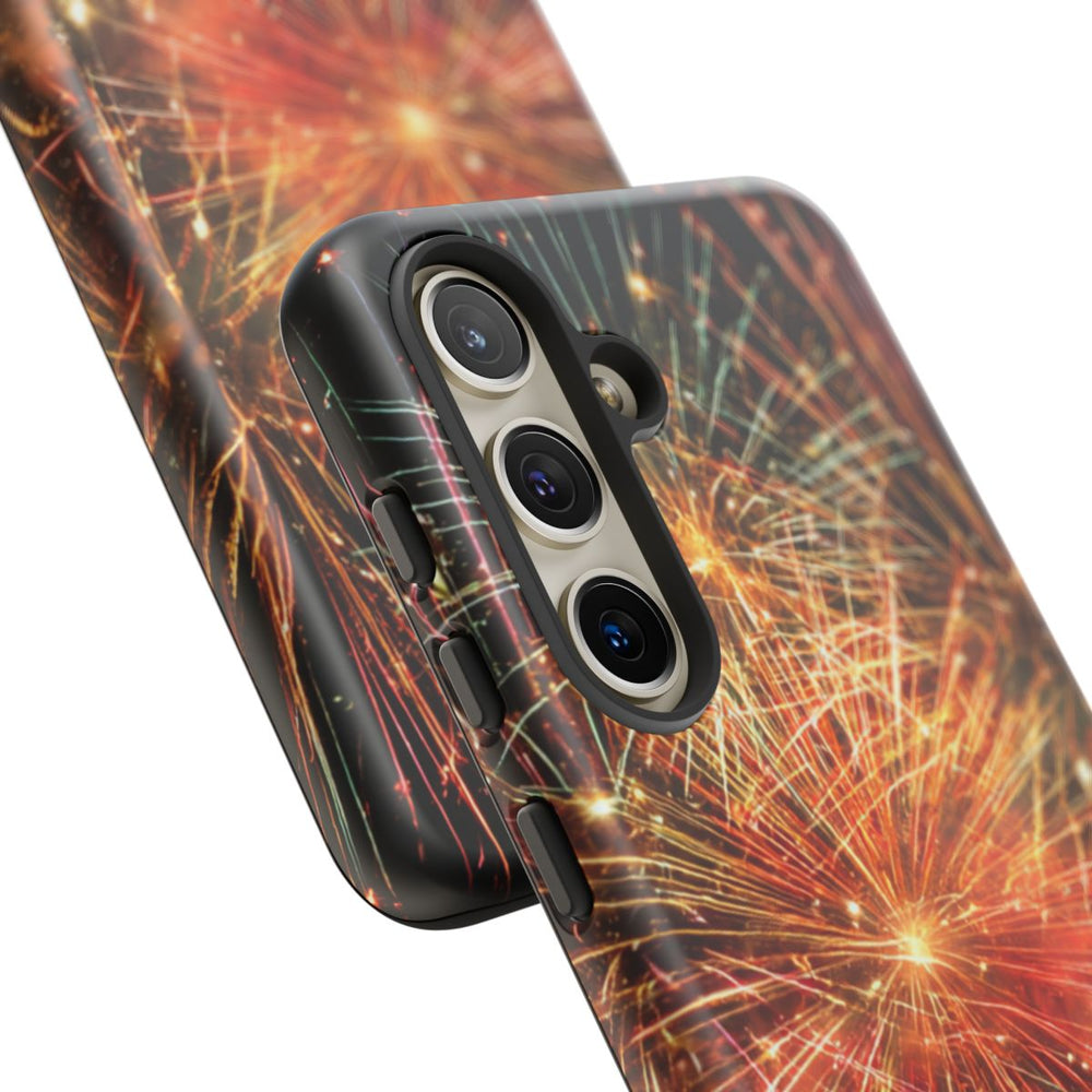Dit hoesje is voorzien van een levendige afbeelding van vuurwerk dat uitbarst tegen een zwarte nachtelijke hemel. Heldere strepen in rood, oranje, geel, groen en blauw stralen vanuit verschillende explosiepunten, wat zorgt voor een dynamisch en feestelijk geheel. De vuurpijlen zijn gedetailleerd met fonkelende uiteinden en lichtgevende kernen, waardoor de energie en sfeer van een nachtelijk feest prachtig worden weergegeven. Het hoesje bestaat uit twee lagen: een stevige polycarbonaat buitenkant en een TPU binnenzijde voor extra bescherming en duurzaamheid. Geschikt voor draadloos opladen en uitstekend bestand tegen weersinvloeden, zodat het hoesje langdurig mooi blijft.