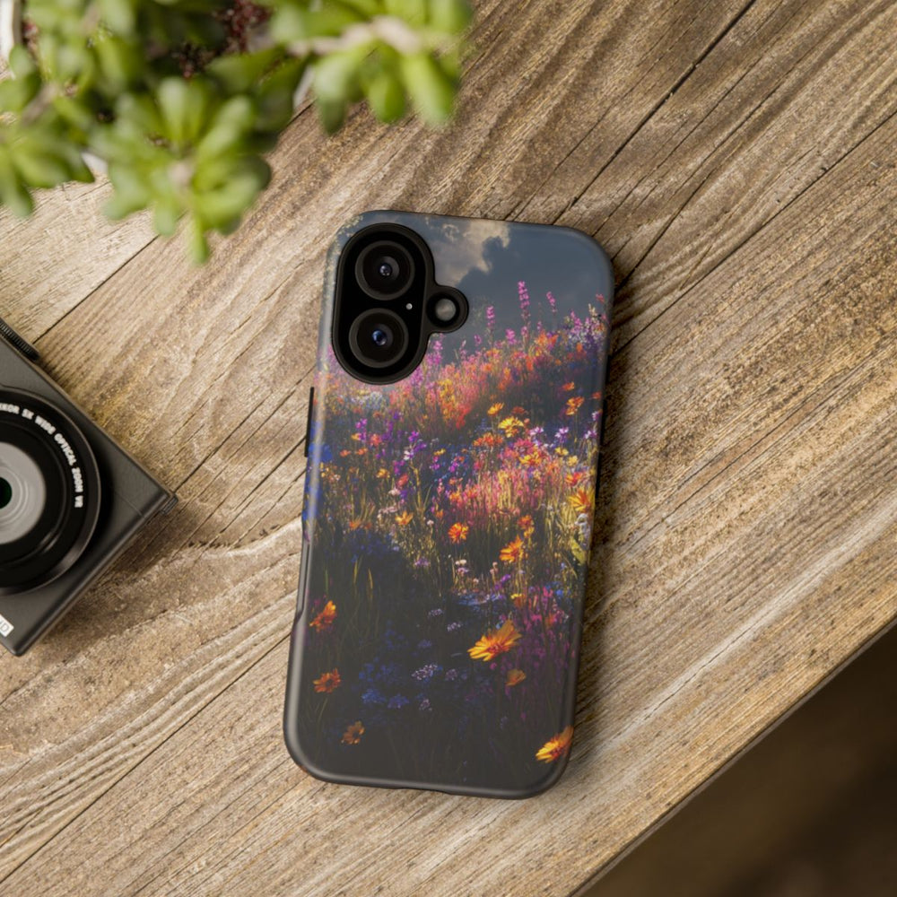 Geef je telefoon een stijlvolle uitstraling met dit Levendige Wilde Bloemen Matte Hoesje. Het ontwerp toont een prachtig veld vol wilde bloemen in diepe, levendige kleuren. Dankzij de stevige dubbele laag, bestaande uit een robuuste polycarbonaat buitenkant en een flexibele TPU-binnenzijde, is je toestel optimaal beschermd. Het hoesje ondersteunt draadloos opladen en laat de verfijnde details en kleurcontrasten van het bloemmotief mooi uitkomen. Ideaal voor natuurliefhebbers en iedereen die houdt van kleurrijke kunst!