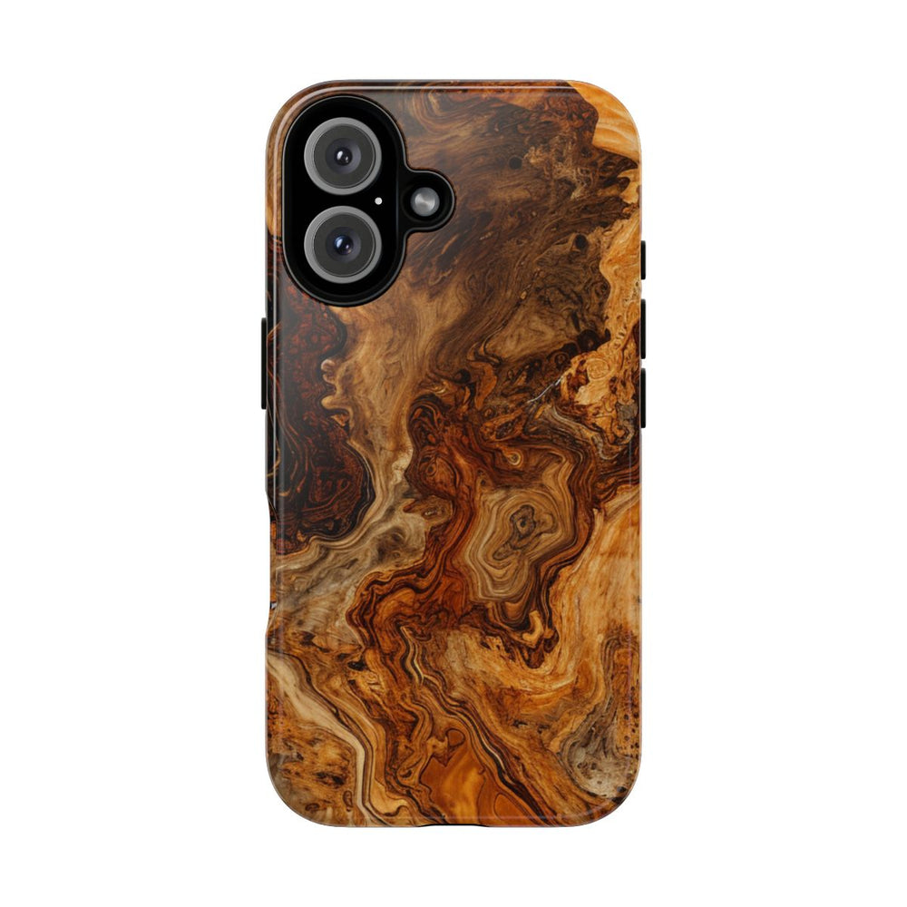 Dit hoesje heeft een luxe uitstraling dankzij de realistische wortelhoutstructuur met sierlijke patronen in verschillende tinten bruin, beige en zwart. De natuurlijke houtnerf zorgt voor een organische en elegante look met verfijnde details en diepte. Het hoesje bestaat uit twee lagen: een stevige polycarbonaat buitenkant en een schokabsorberende TPU binnenlaag, wat zorgt voor extra bescherming en duurzaamheid. Het hoesje is geschikt voor draadloos opladen en bestand tegen weersinvloeden, zodat het zijn mooie uitstraling langdurig behoudt.