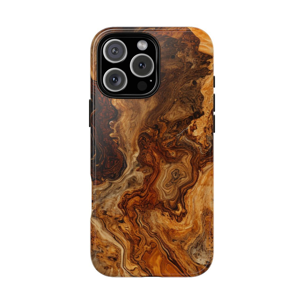 Dit hoesje heeft een luxe uitstraling dankzij de realistische wortelhoutstructuur met sierlijke patronen in verschillende tinten bruin, beige en zwart. De natuurlijke houtnerf zorgt voor een organische en elegante look met verfijnde details en diepte. Het hoesje bestaat uit twee lagen: een stevige polycarbonaat buitenkant en een schokabsorberende TPU binnenlaag, wat zorgt voor extra bescherming en duurzaamheid. Het hoesje is geschikt voor draadloos opladen en bestand tegen weersinvloeden, zodat het zijn mooie uitstraling langdurig behoudt.