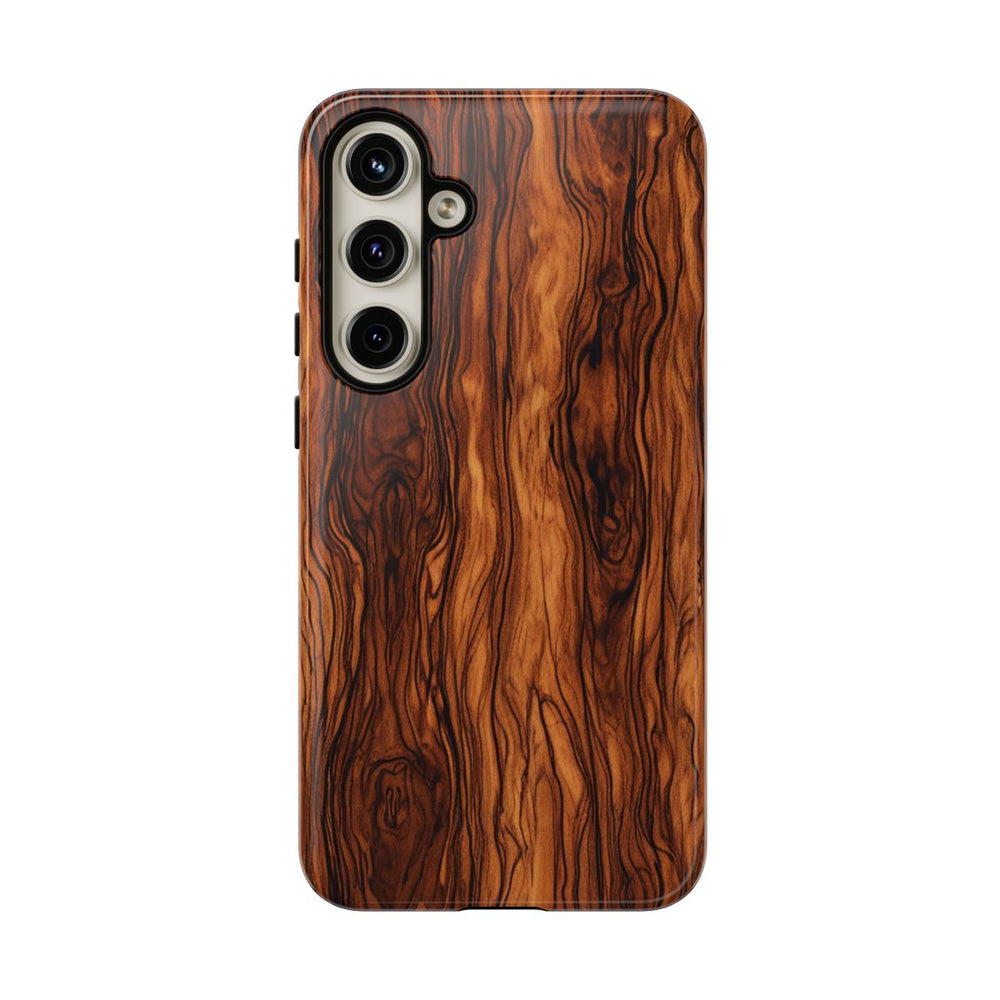 Dit hoesje heeft een luxe burlhoutstructuur met fijne, natuurlijke houtnerfpatronen in diverse bruintinten. De gedetailleerde lijnen en knoesten zorgen voor een elegante en organische uitstraling. Het glanzende hoesje bestaat uit twee lagen: een stevige polycarbonaat buitenkant en een TPU binnenzijde voor extra duurzaamheid en bescherming. Het hoesje ondersteunt draadloos opladen en biedt uitstekende weerstand tegen weersinvloeden, terwijl de optische kwaliteit langdurig behouden blijft.