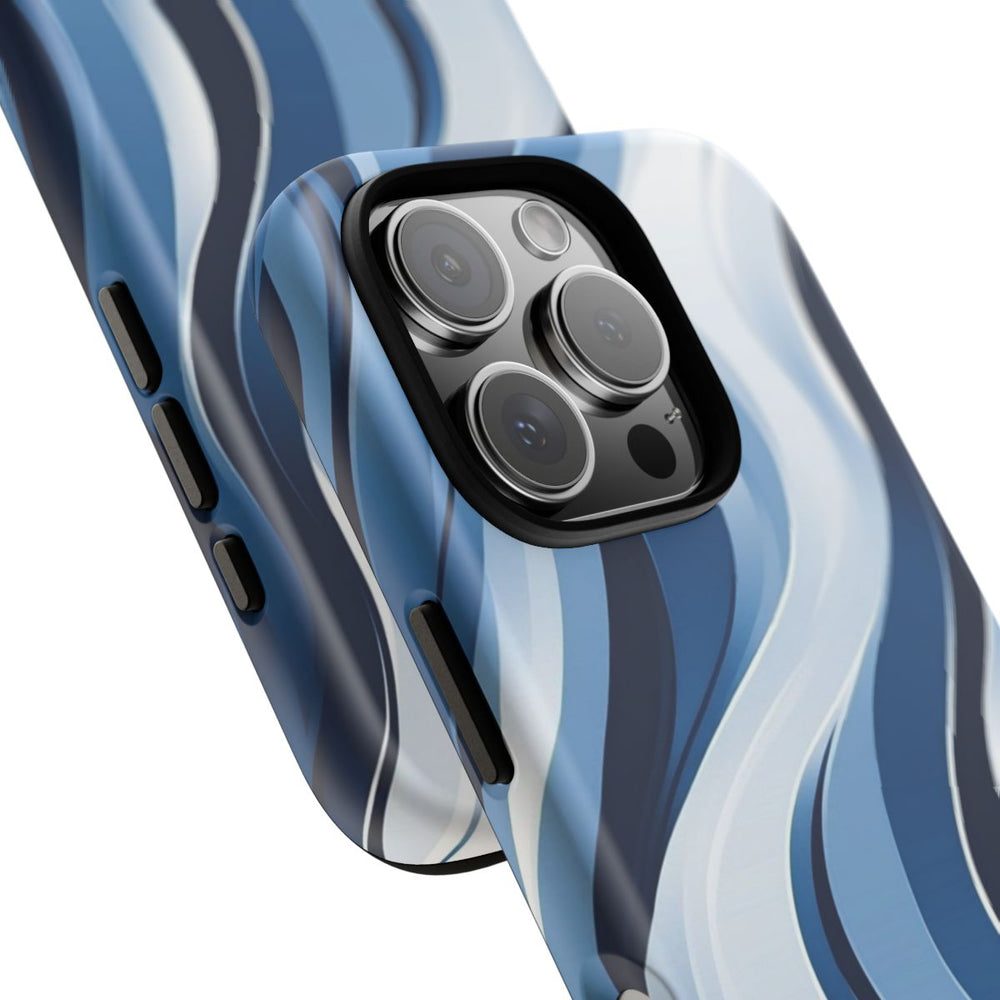 Geef jouw telefoon een stijlvolle uitstraling met het Moderne Blauwe Golven Telefoonhoesje. Het opvallende ontwerp bestaat uit vloeiende patronen in diepe blauwtinten en helder wit, wat zorgt voor een eigentijdse en dynamische look. Dit stevige hoesje is gemaakt van 100% polycarbonaat en 100% TPU en biedt dankzij de dubbele laag uitstekende bescherming, terwijl het slank blijft. Geschikt voor draadloos opladen en goed bestand tegen invloeden van buitenaf. Ideaal voor wie een uniek ontwerp en praktische bescherming waardeert.