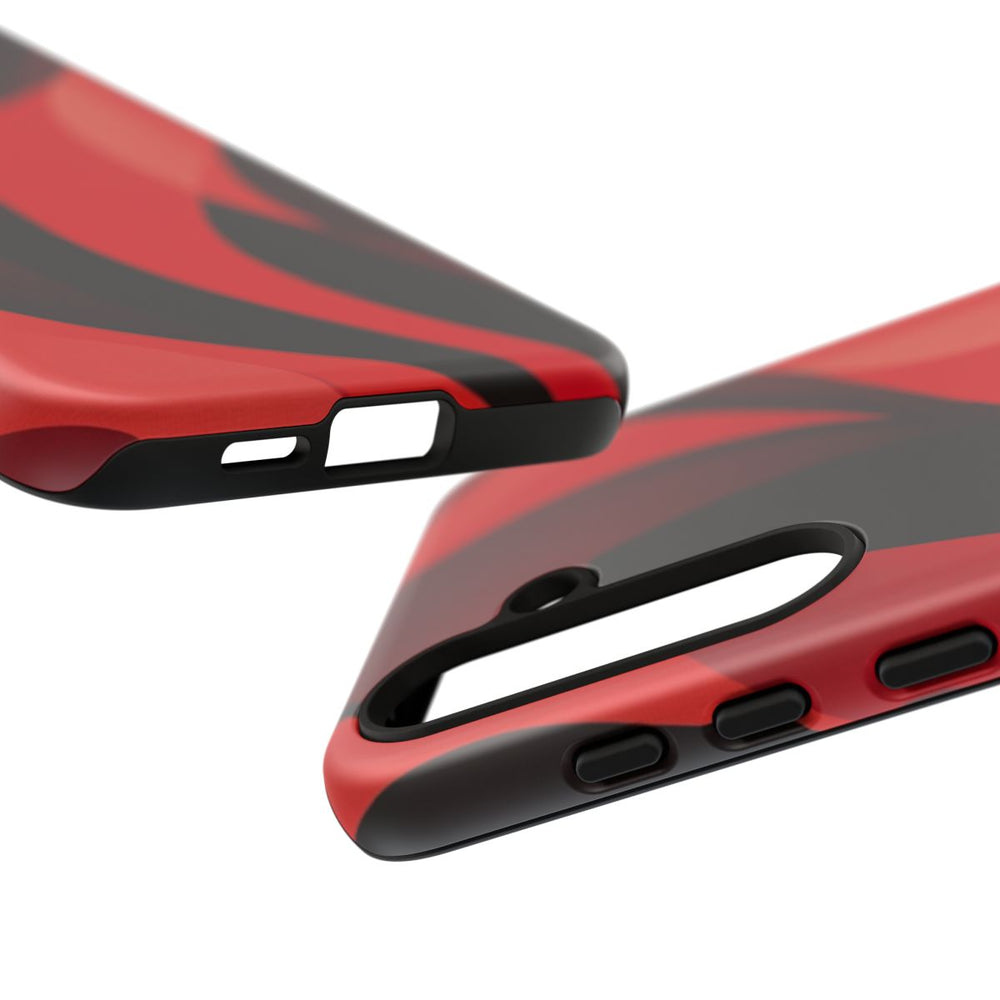 Geef je telefoon een opvallende uitstraling met dit Moderne Rode Golfpatronen Matte Hoesje. Het unieke ontwerp met vloeiende rode en zwarte golven zorgt voor een krachtige, stijlvolle look en biedt tegelijkertijd optimale bescherming. Dankzij de dubbele laag van 100% polycarbonaat en 100% TPU is het hoesje extra stevig en duurzaam. Het ontwerp ondersteunt draadloos opladen en is bestand tegen dagelijks gebruik en slijtage. Maak je toestel compleet met deze blikvanger die stijl en functionaliteit moeiteloos combineert.