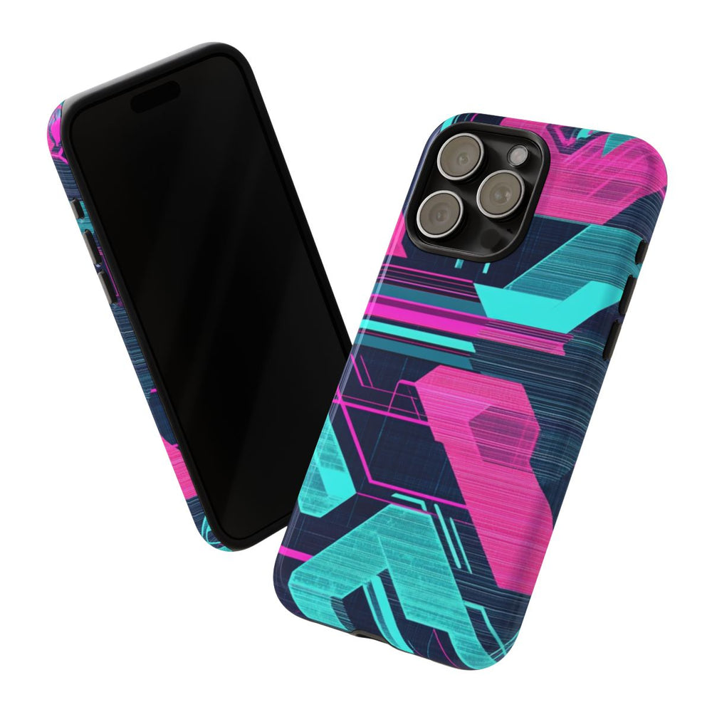 Dit hoesje is voorzien van een opvallend geometrisch patroon met felle neonroze en cyaanblauwe vormen op een donkere achtergrond. De hoekige, met elkaar verbonden figuren zorgen voor een futuristisch en dynamisch effect. Het patroon oogt digitaal en heeft een gelaagde uitstraling met fijne lijnen en diepte. Het glanzende hoesje bestaat uit een stevige polycarbonaat buitenkant en een TPU binnenlaag, waardoor je toestel optimaal wordt beschermd. Daarnaast is het hoesje geschikt voor draadloos opladen. De heldere neonkleuren springen direct in het oog.