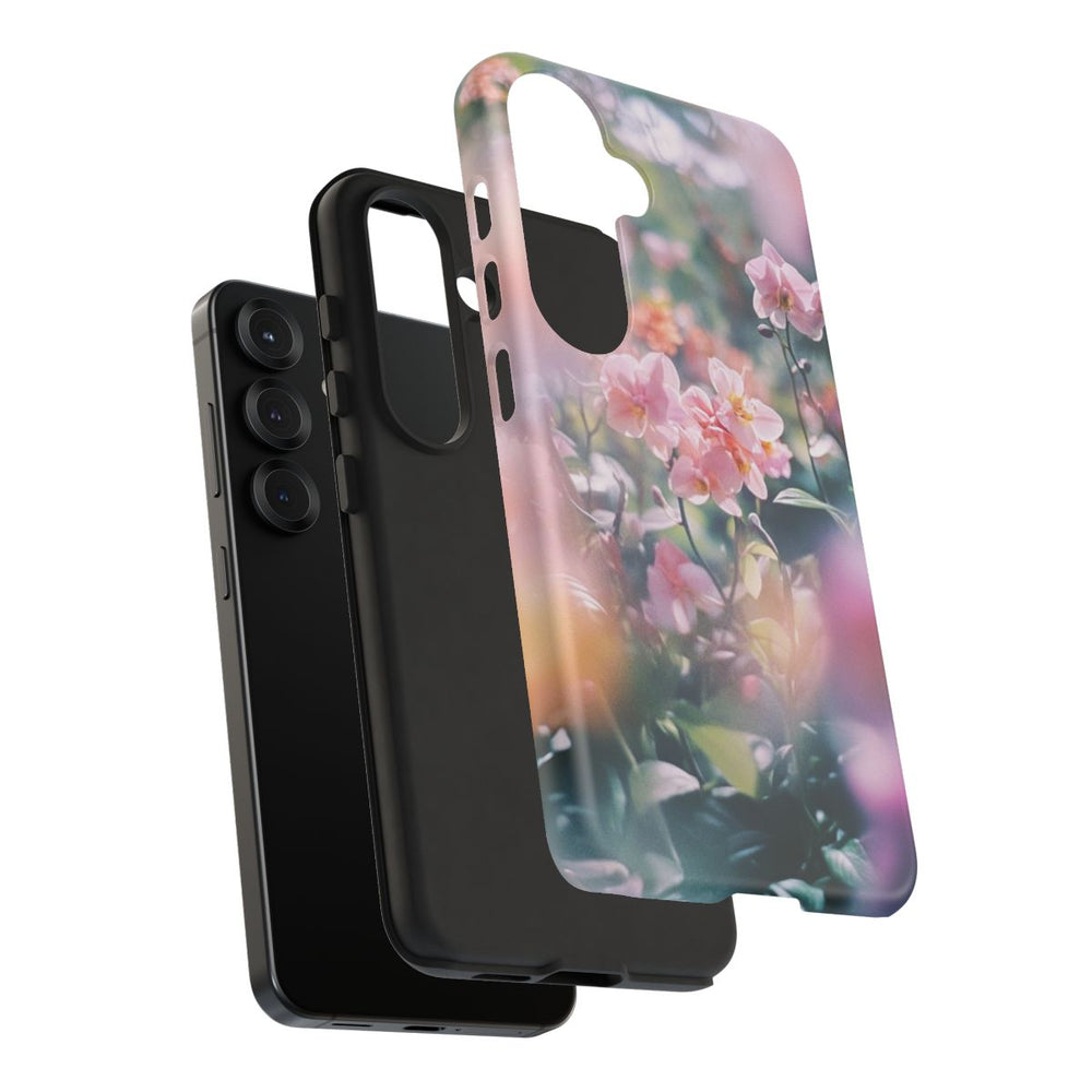 Dit hoesje heeft een prachtig boeket van orchideeën met zachte roze en paarse bloemen. De achtergrond toont een dromerige waas van extra orchideeën, wat zorgt voor een luxe uitstraling. Dankzij het natuurlijke licht komen de verfijnde kleuren van de bloemen mooi naar voren. Het hoesje is voorzien van een dubbele laag voor extra bescherming en ondersteunt draadloos opladen. Ideaal voor liefhebbers van bloemenmotieven die hun toestel stijlvol willen beschermen.
