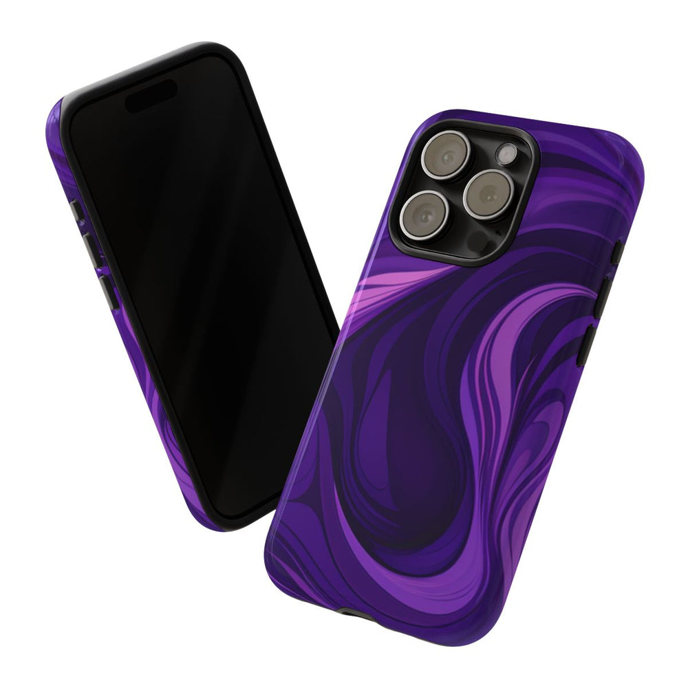 Dit hoesje heeft een abstract golfpatroon in verschillende paarstinten. De vloeiende, golvende lijnen zorgen voor een dynamisch en levendig effect, waarbij donkere en lichte paarse kleuren mooi in elkaar overlopen. Het patroon bedekt het gehele oppervlak, wat een gevoel van beweging en diepte geeft. Het hoesje is glanzend afgewerkt en bestaat uit twee lagen: een stevige polycarbonaat buitenkant en een TPU-binnenzijde voor extra bescherming. Het hoesje ondersteunt draadloos opladen en is bestand tegen weersinvloeden.