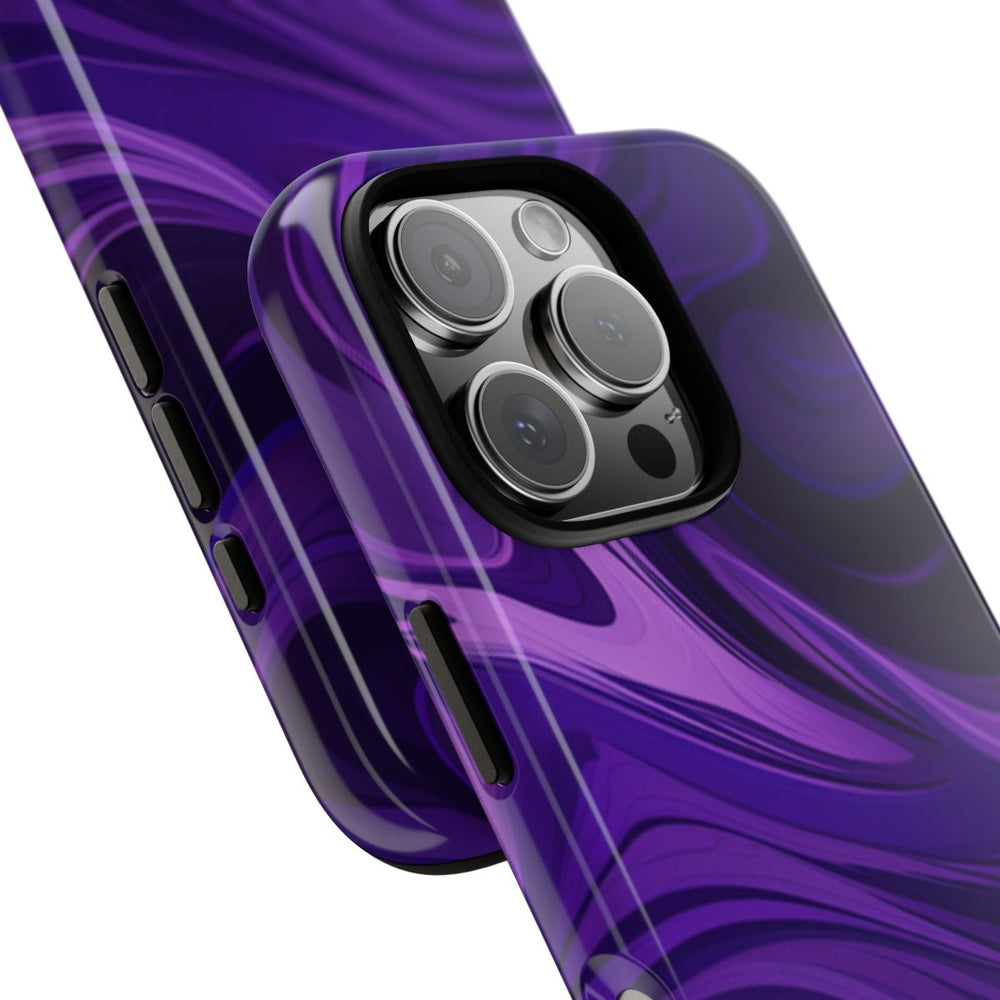 Dit telefoonhoesje is voorzien van een abstract golfpatroon met vloeiende, golvende lijnen in verschillende paarstinten. Het ontwerp zorgt voor een dynamisch gevoel van beweging en diepte door de soepele rondingen en subtiele kleurverlopen. Het hoesje heeft een glanzende afwerking en bestaat uit twee lagen: een stevige polycarbonaat buitenkant en een TPU binnenzijde voor extra stevigheid en bescherming. Het hoesje ondersteunt draadloos opladen, is bestand tegen weersinvloeden en behoudt langdurig zijn heldere uitstraling.