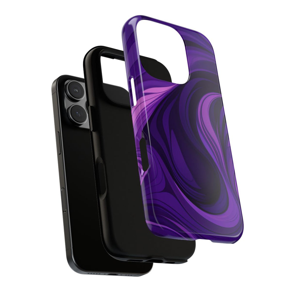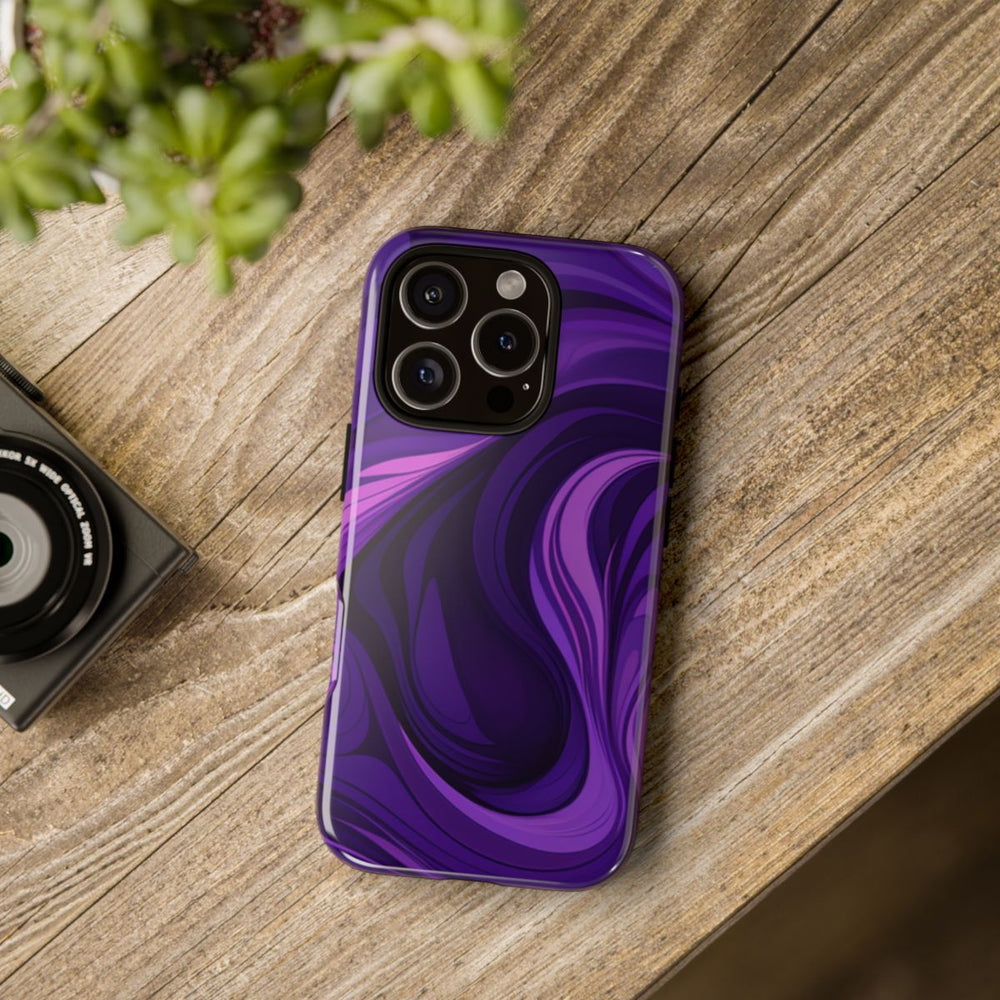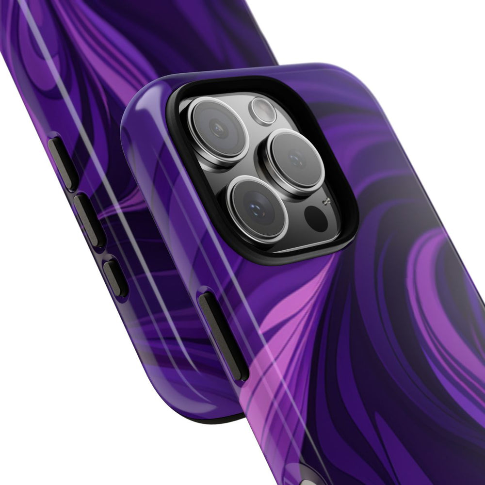 Dit hoesje heeft een abstract golfpatroon in verschillende paarstinten. De vloeiende, golvende lijnen zorgen voor een dynamisch en levendig effect, waarbij donkere en lichte paarse kleuren mooi in elkaar overlopen. Het patroon bedekt het gehele oppervlak, wat een gevoel van beweging en diepte geeft. Het hoesje is glanzend afgewerkt en bestaat uit twee lagen: een stevige polycarbonaat buitenkant en een TPU-binnenzijde voor extra bescherming. Het hoesje ondersteunt draadloos opladen en is bestand tegen weersinvloeden.