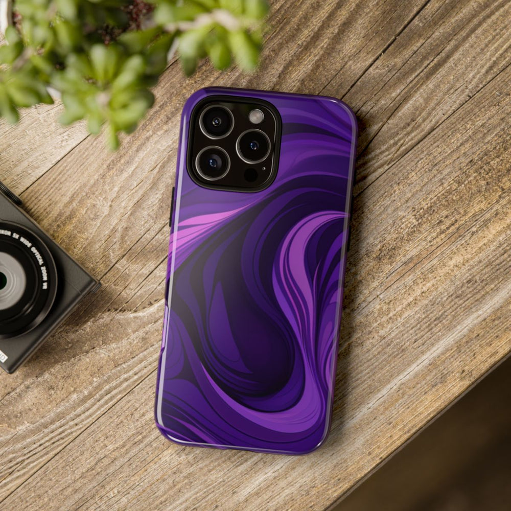 Dit hoesje heeft een abstract golfpatroon in verschillende paarstinten. De vloeiende, golvende lijnen zorgen voor een dynamisch en levendig effect, waarbij donkere en lichte paarse kleuren mooi in elkaar overlopen. Het patroon bedekt het gehele oppervlak, wat een gevoel van beweging en diepte geeft. Het hoesje is glanzend afgewerkt en bestaat uit twee lagen: een stevige polycarbonaat buitenkant en een TPU-binnenzijde voor extra bescherming. Het hoesje ondersteunt draadloos opladen en is bestand tegen weersinvloeden.