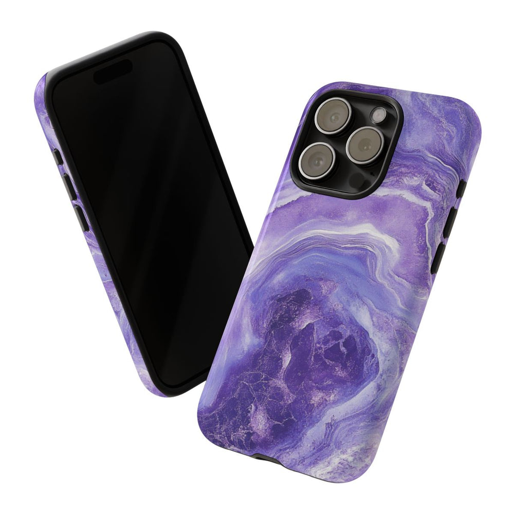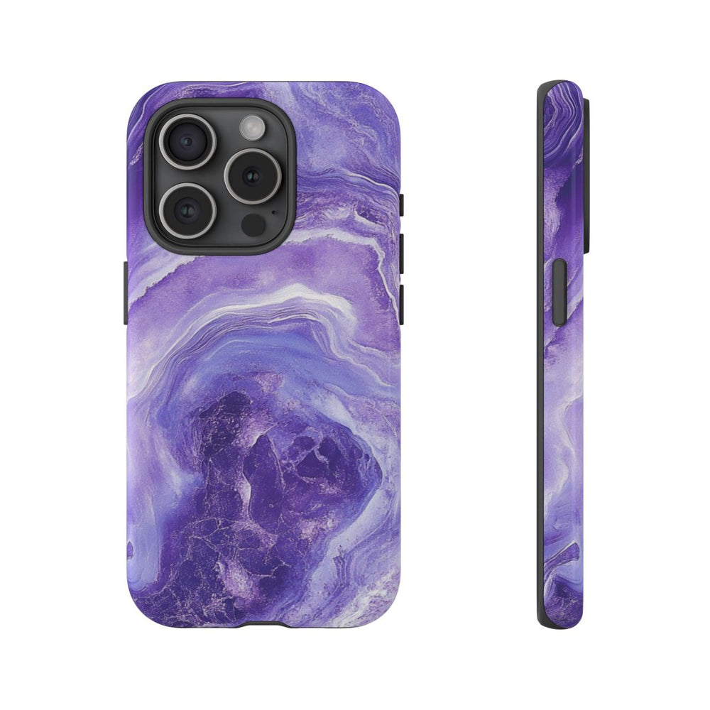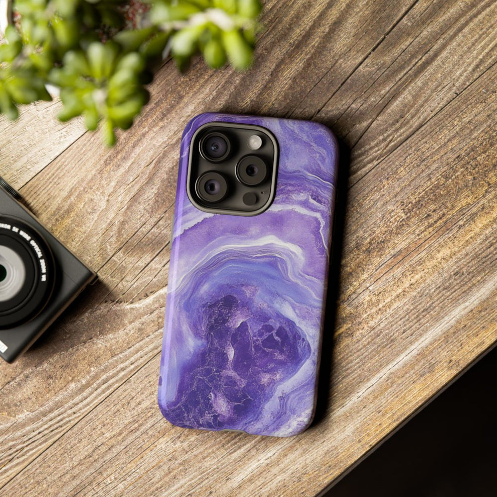 Dit hoesje heeft een rijke paarse marmerstructuur met vloeiende, organische patronen. Diverse paarstinten worden moeiteloos gecombineerd met wit en lichte lavendelkleuren, waardoor het hoesje een natuurlijke steenachtige uitstraling krijgt. De golvende lijnen en aders geven het ontwerp extra diepte en dynamiek. De print is aangebracht op een glanzend, stevig hoesje met een duurzame polycarbonaat buitenkant en een TPU-binnenzijde, voor optimale bescherming en ondersteuning van draadloos opladen. Het hoesje is uitstekend bestand tegen weersinvloeden en behoudt langdurig zijn heldere uiterlijk.