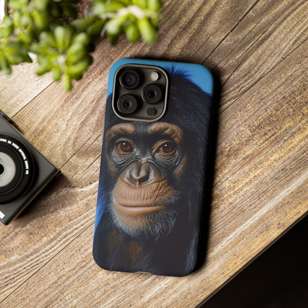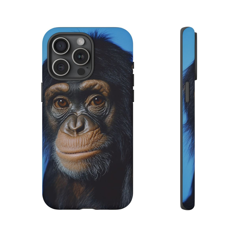 Dit hoesje is voorzien van een portret van een aap met zwarte vacht die recht naar de kijker kijkt. De heldere koningsblauwe achtergrond zorgt voor een opvallend contrast met het dier. De afbeelding is scherp en levendig, waardoor dit hoesje direct in het oog springt. Het hoesje bestaat uit twee lagen en is gemaakt van 100% polycarbonaat en 100% TPU voor extra stevigheid en bescherming. Daarnaast is het hoesje geschikt voor draadloos opladen, wat het gebruiksgemak vergroot.