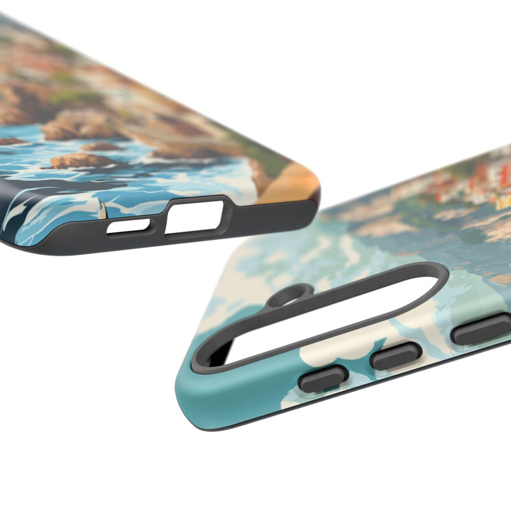 Dit hoesje is voorzien van een kleurrijke retro illustratie van de Amalfikust, met levendige gebouwen op rotsachtige kliffen en uitzicht op een helderblauwe zee. Op de afbeelding varen bootjes over het water en omlijst weelderig groen het kustlandschap. De illustratie straalt de sfeer uit van een zonnige dag met witte wolken in een heldere lucht. Perfect voor liefhebbers van reizen en prachtige landschappen. Het hoesje is gemaakt van stevige materialen en biedt optimale bescherming voor je toestel.