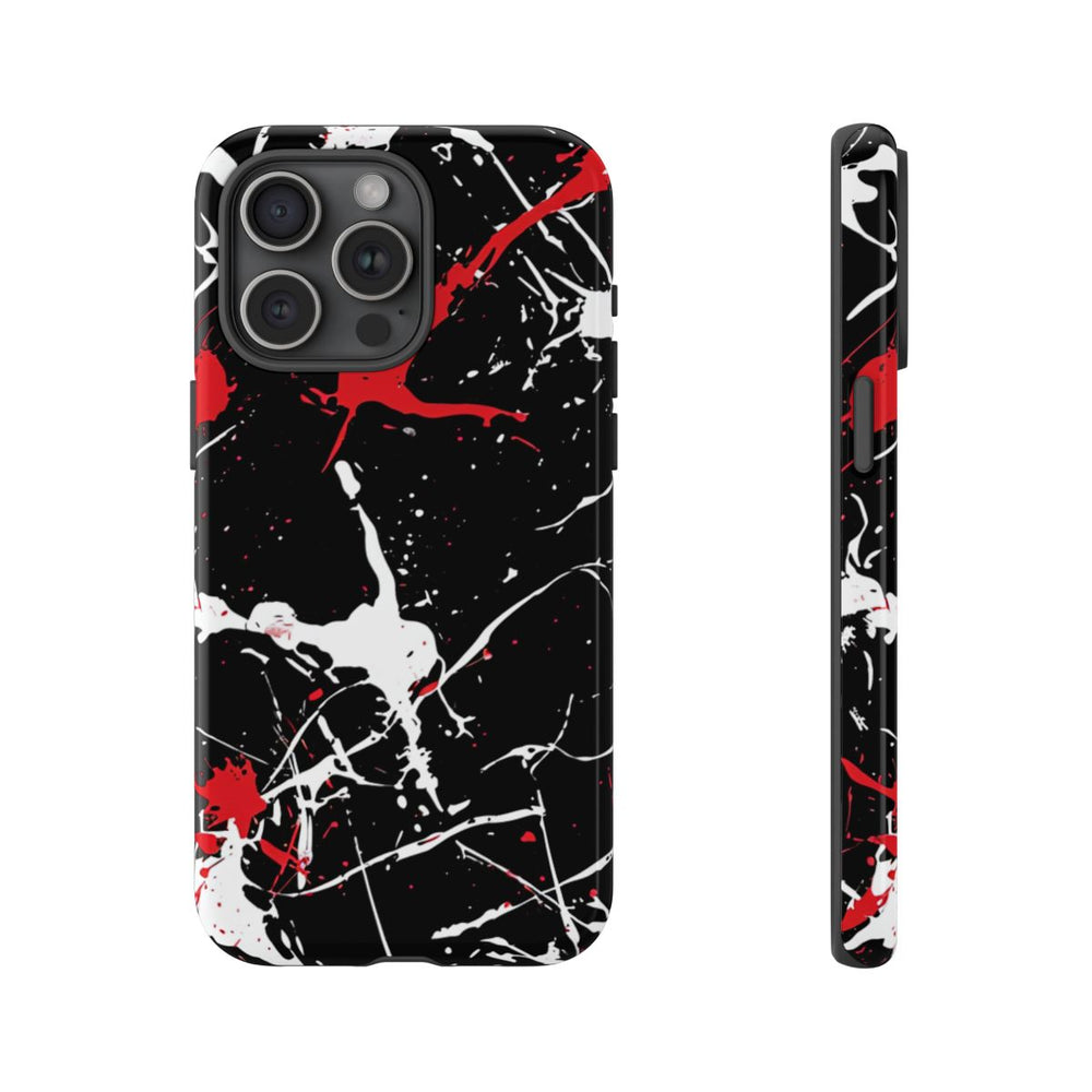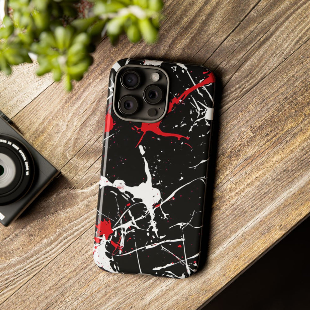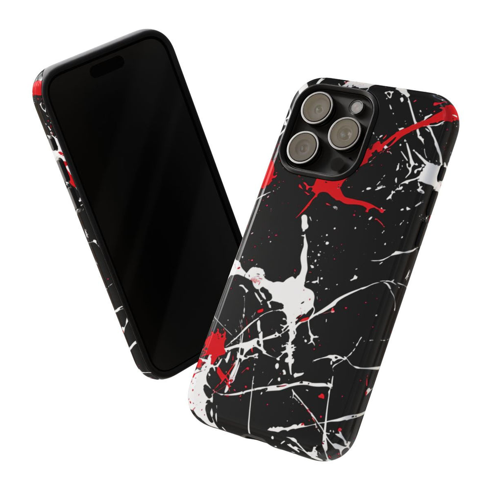 Dit hoesje heeft een opvallend ontwerp met rode en witte verfspatten op een diepzwarte achtergrond. De spetters verschillen in grootte en vorm, wat zorgt voor een levendig en abstract patroon. Het hoesje bestaat uit twee lagen: een glanzende buitenkant van polycarbonaat en een binnenzijde van TPU, wat zorgt voor extra stevigheid en bescherming. Het ondersteunt draadloos opladen en is bestand tegen weersinvloeden, zodat het hoesje langdurig mooi blijft.