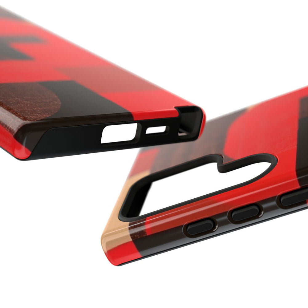 Dit telefoonhoesje heeft een modern en artistiek ontwerp met een geometrisch abstract patroon in opvallende rood-, bruin- en beige tinten. De vormen bestaan uit rechthoeken, vierkanten en afgeronde hoeken, die samen een rasterachtig geheel vormen. De licht verweerde, korrelige textuur geeft het ontwerp extra diepte en karakter. Het hoesje is glanzend en stevig, met een buitenkant van polycarbonaat en een binnenzijde van TPU, waardoor je telefoon optimaal beschermd is. Geschikt voor draadloos opladen.