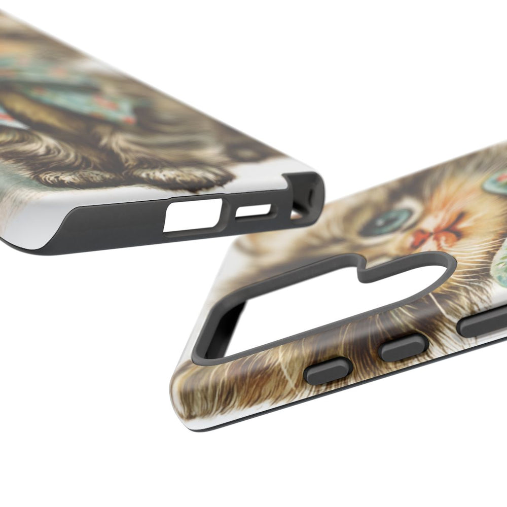 Bescherm je toestel met dit charmante matte hoesje met een schattige, vintage kitten voorzien van een sierlijke strik. Het ontwerp ademt de sfeer van kitschkunst en geeft je telefoon een speelse, nostalgische uitstraling. Dankzij de stevige materialen en dubbele laag biedt dit hoesje optimale bescherming, terwijl de vrolijke illustratie direct in het oog springt. Ideaal voor kattenliefhebbers en iedereen die houdt van een bijzonder grafisch ontwerp: dit hoesje combineert stijl met gebruiksgemak.