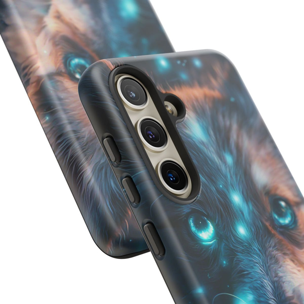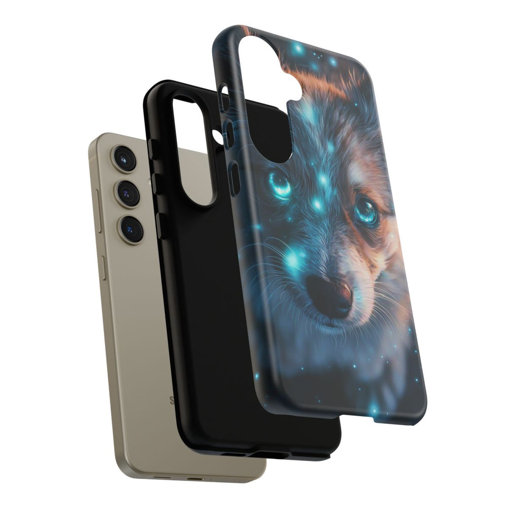 Dit ontwerp toont een close-up van het gezicht van een schattige puppy met grote, lichtgevende ogen en zachte vacht. Rondom de puppy zweven lichte deeltjes, wat zorgt voor een magische sfeer. De donkere, dromerige achtergrond versterkt het betoverende effect. Het hoesje heeft een stevige dubbele laag voor extra bescherming en ondersteunt draadloos opladen. Ideaal voor dierenliefhebbers die op zoek zijn naar een uniek ontwerp.