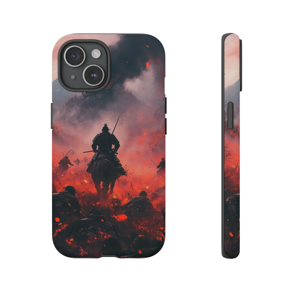 Dit ontwerp toont een indrukwekkend tafereel met samurai die wegrijden in een levendig landschap met bergen en een kasteel, wat zorgt voor een intense sfeer. De diepe, vurige kleuren benadrukken de energie van het moment. Het hoesje is vervaardigd met een stevige polycarbonaat buitenkant en een TPU binnenzijde, wat uitstekende bescherming biedt. Ondersteunt draadloos opladen en is daardoor een praktische keuze voor dagelijks gebruik.