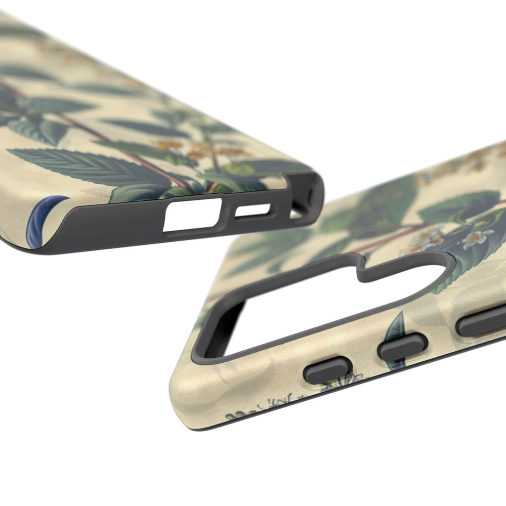 Dit hoesje is voorzien van een naadloos vintage botanisch patroon met gedetailleerde illustraties van groene bladeren en diverse kleine bloemen in witte, gele en blauwe tinten. De zachte beige achtergrond versterkt het natuurlijke en klassieke karakter van het ontwerp. Het motief loopt door over het hele oppervlak, wat zorgt voor een harmonieus en elegant geheel. Het matte, stevige hoesje is gemaakt van duurzaam polycarbonaat met een TPU-voering en biedt uitstekende bescherming en ondersteuning voor draadloos opladen.
