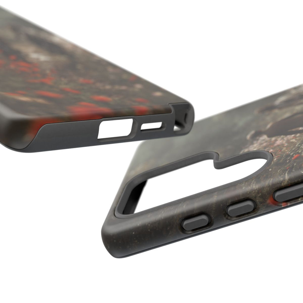 Dit hoesje toont een romantisch tafereel van een stelletje in vintage stijl dat samen fietst over een smal zandpad, omringd door kleurrijke wilde bloemen. De omgeving bestaat uit een weelderig groen bos met hoge bomen en zacht, diffuus licht, wat zorgt voor een dromerige sfeer. Het stel draagt kleding uit vroegere tijden, zoals hoeden en bretels, wat het geheel een nostalgisch karakter geeft. Het hoesje heeft een stevige dubbele laag met een polycarbonaat buitenkant en een TPU-binnenzijde, wat zorgt voor extra stevigheid en bescherming. Bovendien is het hoesje geschikt voor draadloos opladen.